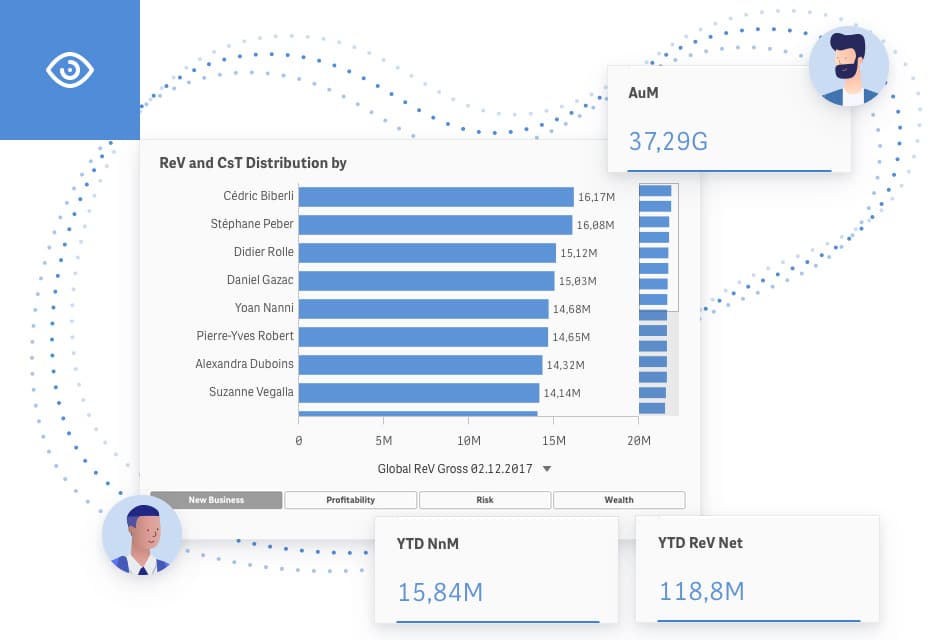 Integraal for Banking brings a common vision and language to the teams. Whether for the Head of PB, DeskHead, Relationship Manager, External Asset Manager or their operational teams, the indicators are shared and common. A single, simplified understanding to support strategy and organisational transformation: this is the challenge of a global management platform. The applications are ready to use, dynamic, interactive and allow you to answer the next question. Self BI comes into its own and allows teams to create their own applications, visuals and analyses while taking advantage of the countless possibilities of ‘story-telling’. It is about giving teams the necessary autonomy, while relying on quality and available data.